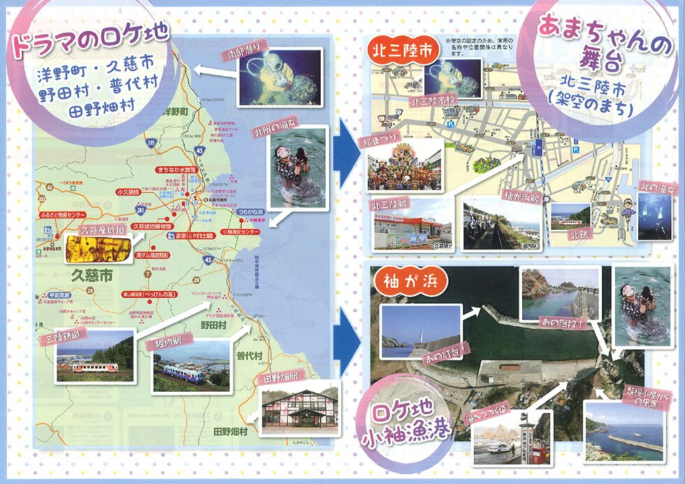 久慈市をはじめとする北三陸沿岸の5市町村が作品の舞台となっています。